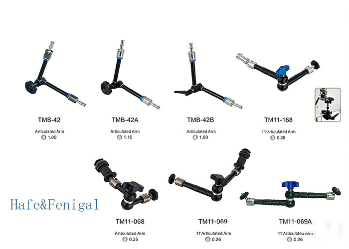 यह व्यापक श्रृंखला फोटोग्राफी, फिल्म निर्माण और स्टूडियो वातावरण में बहुमुखी उपकरण माउंटिंग के लिए डिज़ाइन किए गए पेशेवर आर्टिकुलेटेड मैजिक आर्म्स और बूम क्लैंप की सुविधा देती है। संग्रह में विभिन्न लंबाई के मैजिक आर्म्स (7", 11", और अन्य आकार) कई संयुक्त विन्यासों के साथ शामिल हैं, साथ ही विशेष बूम क्लैंप भी शामिल हैं जो विभिन्न ट्यूब व्यास (8/10/12/16 मिमी) को समायोजित करते हैं। ये सटीक उपकरण कैमरों, लाइटों, माइक्रोफोन, मॉनिटर और अन्य उपकरणों की लचीली स्थिति और सुरक्षित पकड़ की अनुमति देते हैं, जिससे रचनात्मक सेटअप सक्षम होते हैं और उत्पादन वर्कफ़्लो में स्थानिक बाधाओं का समाधान होता है।