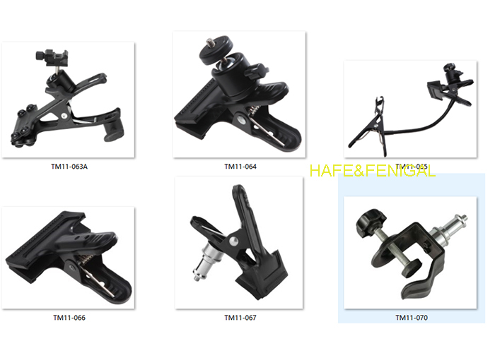 प्रमुख पैरामीटरः वजन प्रोफाइल 0.08kg (कॉम्पैक्ट क्लिप) से 0.44kg (हैवी-ड्यूटी क्लैंप) (पोर्टेबिलिटी/स्थिरता का अनुकूलन) तक होता है; विशेष विशेषताएं (घुमावदार जोड़, गेंद के सिर, गर्म जूते रिसीवर),स्प्रिंग लोडेड तंत्र) कार्यात्मक लचीलापन जोड़ते हैं।